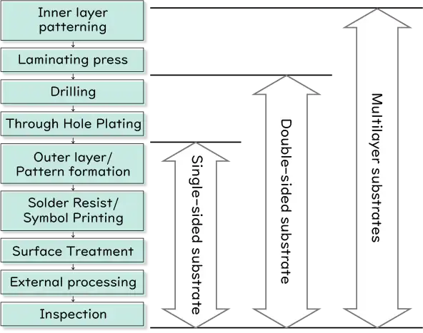 | Each process is introduced using a multilayer printed circuit board as an example. |
