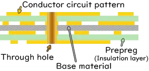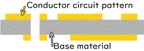 ![]() Single-sided substrate | Consumer electronic equipment (TVs, etc.) Mass-produced consumer electronics for cost reduction | Substrate with a structure in which a conductor circuit is formed on only one side. |