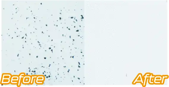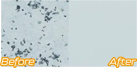 | Target particle size: Sebum and fragments / Ave.30um, Aluminum particles / approx.2um Cleaing condition: MICROCLEAN ECO-8100U(50℃ x 1min with ultrasonic) |