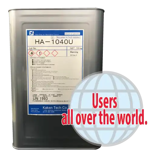 HA-1040 is a cleaner mainly made of glycols and alcohols, and has been used as a cleaner for solder pastes and inks and for degreasing precise parts in Japan and overseas. |