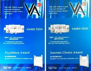 The ST-05 rinse system has become the mainstream flux cleaning system in Japan, along with semi-aqueous systems, due to the popularity of these features at many customers' manufacturing sites. Recently, the MICROCLEANER won two awards at the 15th (2021) Vision Awards held by SMT China Surface Mount Technology in China. (Fig. 5)