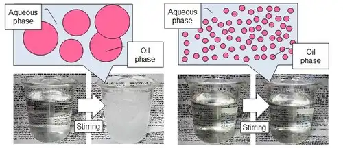 One phase with higher affinity (mainly the oil phase) wets and spreads over the surface of the particles, thereby weakening the interaction and physical adhesion between the surface to be cleaned and the particles. It is assumed that the other phase (mainly aqueous) has the effect of pulling the particle-containing oil phase away from the surface to be cleaned and dispersing it.