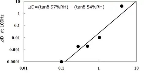 Based on the control standard of dielectric loss (tanδ) of electrode surfaces measured with JIS2 type interdigitated array electrodes, deflux equipment determines the concentration of flux residue contamination and of rinse chemicals in correlation to tanδ of electrodes (Fig 2.8.5). Also packaging sites design the equipment capable of rinse chemicals concentration control with a conductivity meter based on the correlation of contaminating flux residue concentration and conductivity (Fig.2.8.6).