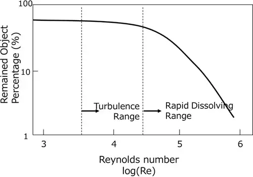 In the circulating jet method turbulence enhances the cleaning efficiency, yet the turning point in cleaning effect appears far above the critical Reynolds number, where Re= more than 26,000. (Fig. 2.8.1) Circulation amount and speed need to be determined to satisfy the appropriate Reynolds number range to get the turbulence effect.