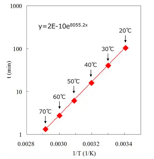 Fig. 2.8.2 shows the relation between cleaning temperature and dissolving time of flux residue for lead-free solder paste. Cleaning time assessment enables calculation on cleaning speed given the same physical/mechanical conditions.