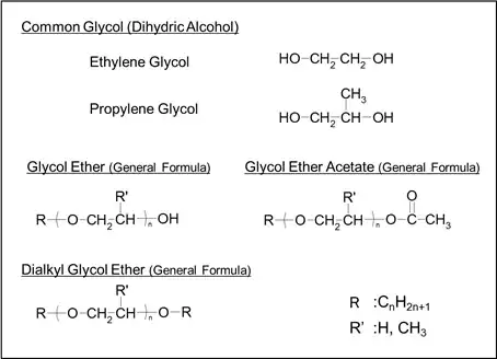 | Ethylene glycol monomethyl ether acetate Ch2-O-CH2-CH2-O-CO-Ch2 |