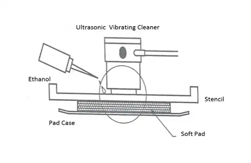Object of cleaning is solder paste residue on repeatedly used stencils. Stencils must be cleaned not only after everyday operation but also after certain times they go through the printing process, removing the solder paste accumulated on the openings thus to maintain the quality in printing and of the stencils themselves(Fig. 6.1.1).