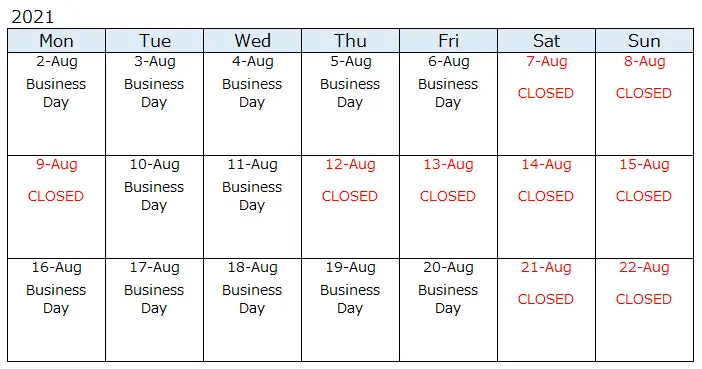 We will resume business as usual from 16-Aug.