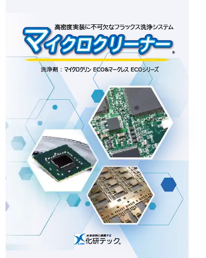高密度実装基板の信頼性確保に不可欠なフラックス洗浄。代替フロンの製造中止や中国VOC規制に洗浄剤へのGB規格が追加されるなど化学物質への規制が強化されるなか、化研テックは更なる高精密洗浄と環境への対応を両立した高機能・低VOC洗浄剤「マイクロクリンECO&マークレスECOシリーズ」を開発しました。
