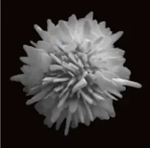 弊社では独自の技術で、世界初となる毬栗状の銀粉(写真)をはじめとし、様々な特殊形状の「TK銀粉」を次々と生み出しています。 |