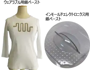 ウェアラブルとして衣服への導電配線のプリントや、シート印刷してモールド成形を使った立体配線が可能です! | |
