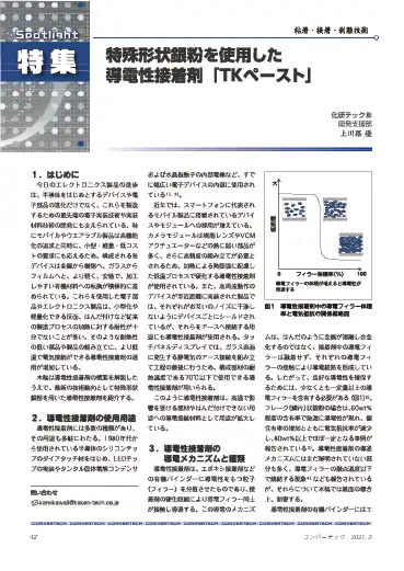 耐熱性の低いフィルムや樹脂製デバイスを使用した電子部品やエレクトロニクス製品の組み立てに、より低温で電気接続ができる導電性接着剤の適用が増加しています。本稿では導電性接着剤の概要を解説したうえで、最新の技術動向として特殊形状銀粉を用いた導電性接着剤を紹介します。 |