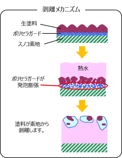 ポリセラガードMは未硬化塗料用の剥離助剤です。あらかじめ塗装治工具やスノコ・グレーチングにポリセラガードMを塗布しておくことで、その上に付着した未硬化塗料をお湯に浸漬するだけで簡単に剥離できます!