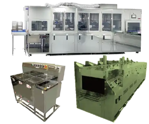 ECO-8100/ECO-R81は、長年多くの市場実績を積み上げてきた当社フラックス洗浄装置「マイクロクリーナ―」での運用を前提としている。当社では洗浄方式、蒸留再生能力、槽の大きさやワークの自動搬送装置の有無に至るまで、お客様のワーク及び生産状況、設置スペースや細かなご要望にあわせて最適な装置のご提案と製作が可能である。(図13)