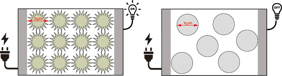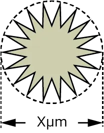 | なぜ、いがぐり状であれば低い濃度で電気が通るのでしょうか? 導電性接着剤は「導電性接着剤とは」で解説した通り、含有されている導電粒子同士が接触して電気を通します。いがぐり状は球状に比べて空隙が多く、同じ大きさ(直径)でも、銀としての密度が低く軽い粒子であることが分かります。 |